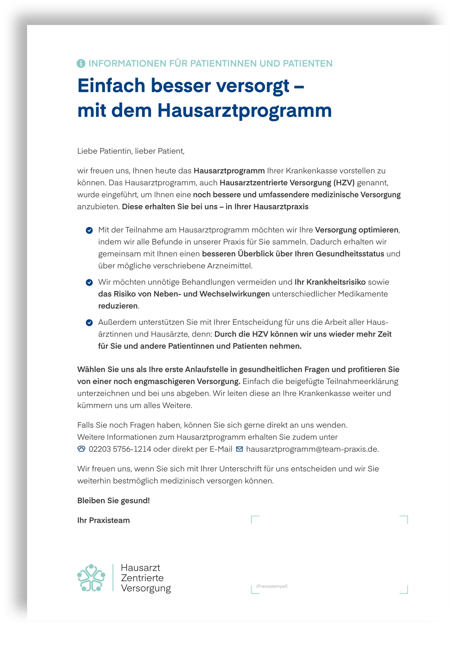 Wie startet man das Gespräch über das Hausarztprogramm?Worauf kann man dabei achten? Und was sind die wichtigsten Punkte? Antworten auf all diese Fragen sind in der Argumentationshilfe zusammengefasst. Einfach downloaden und inspirieren lassen.